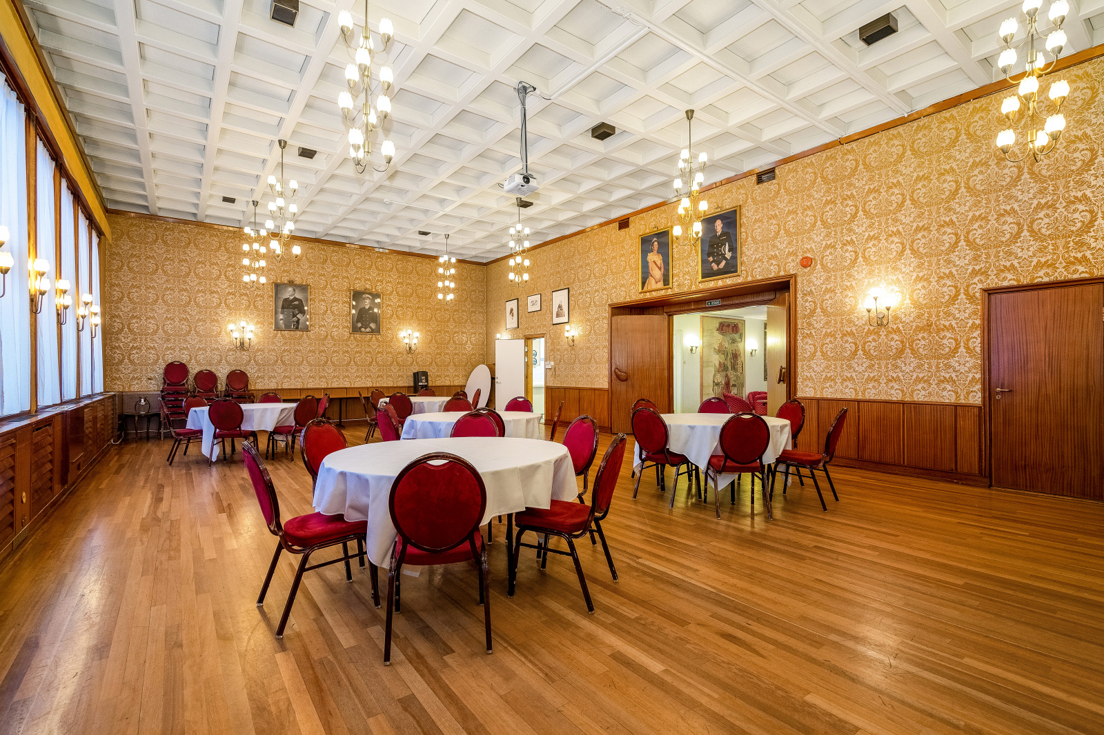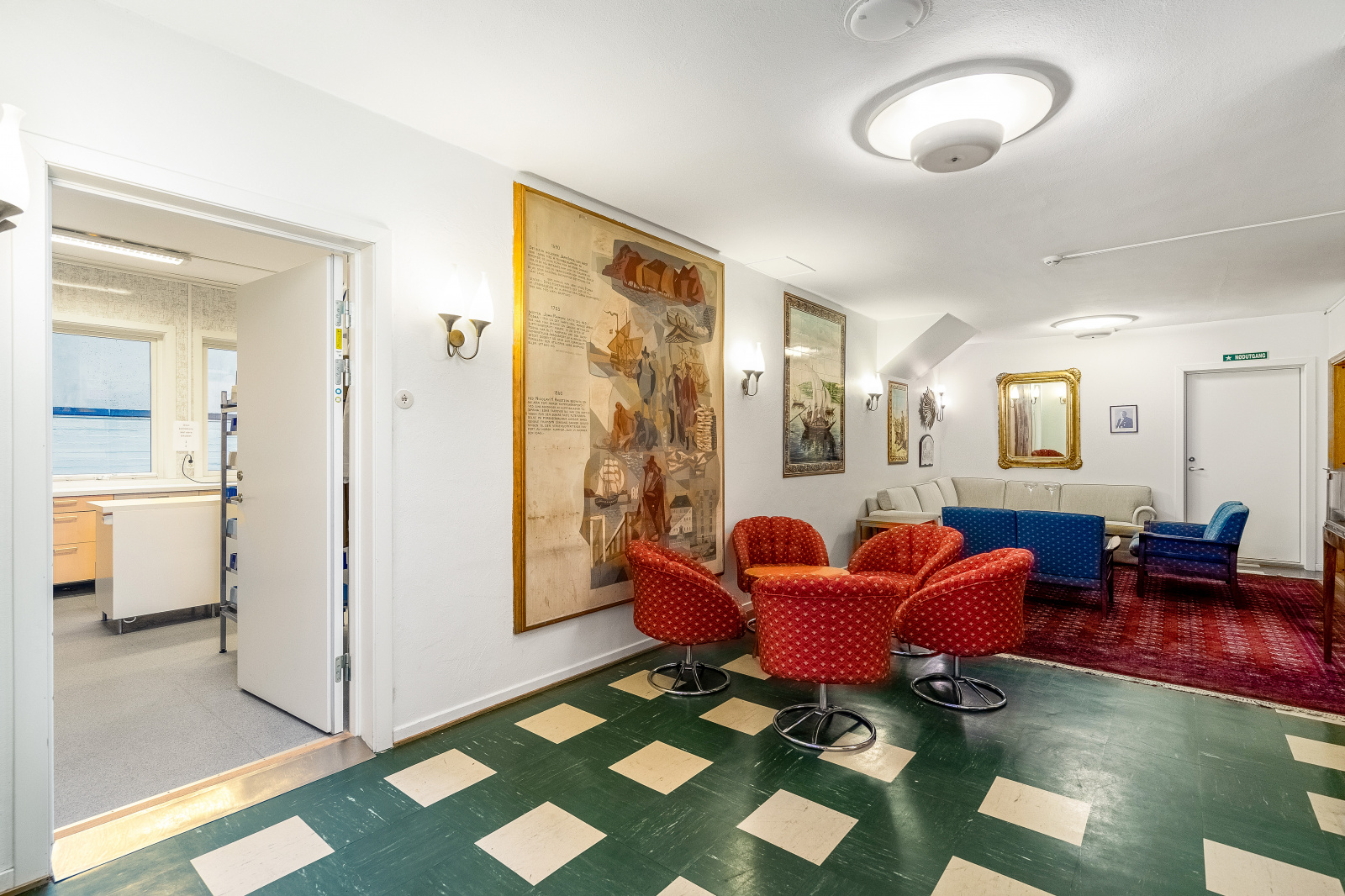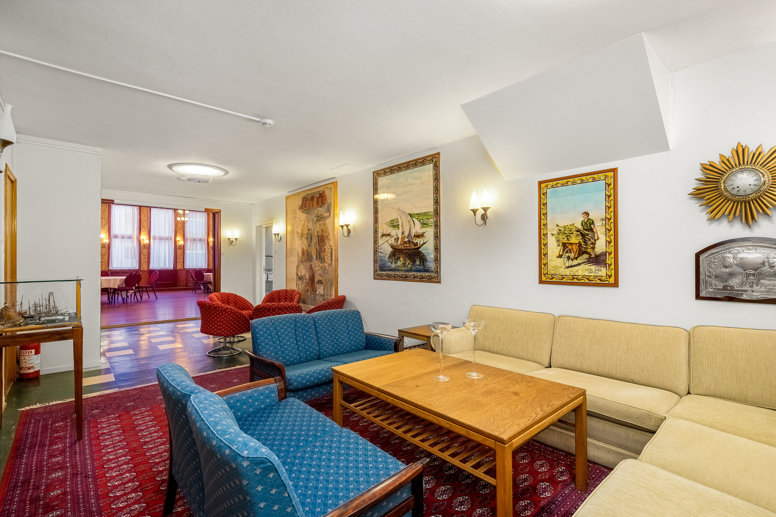 I 2. etg. er kjøkken, foajé med sittegrupper, festsal og peisestue.
