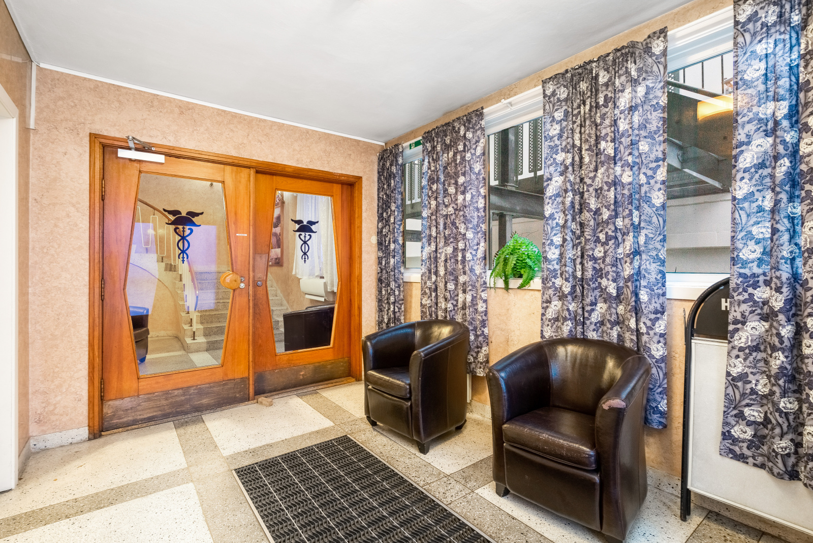 Lokalet har inngang i 1. etg med garderobe og dame- og herretoalett.